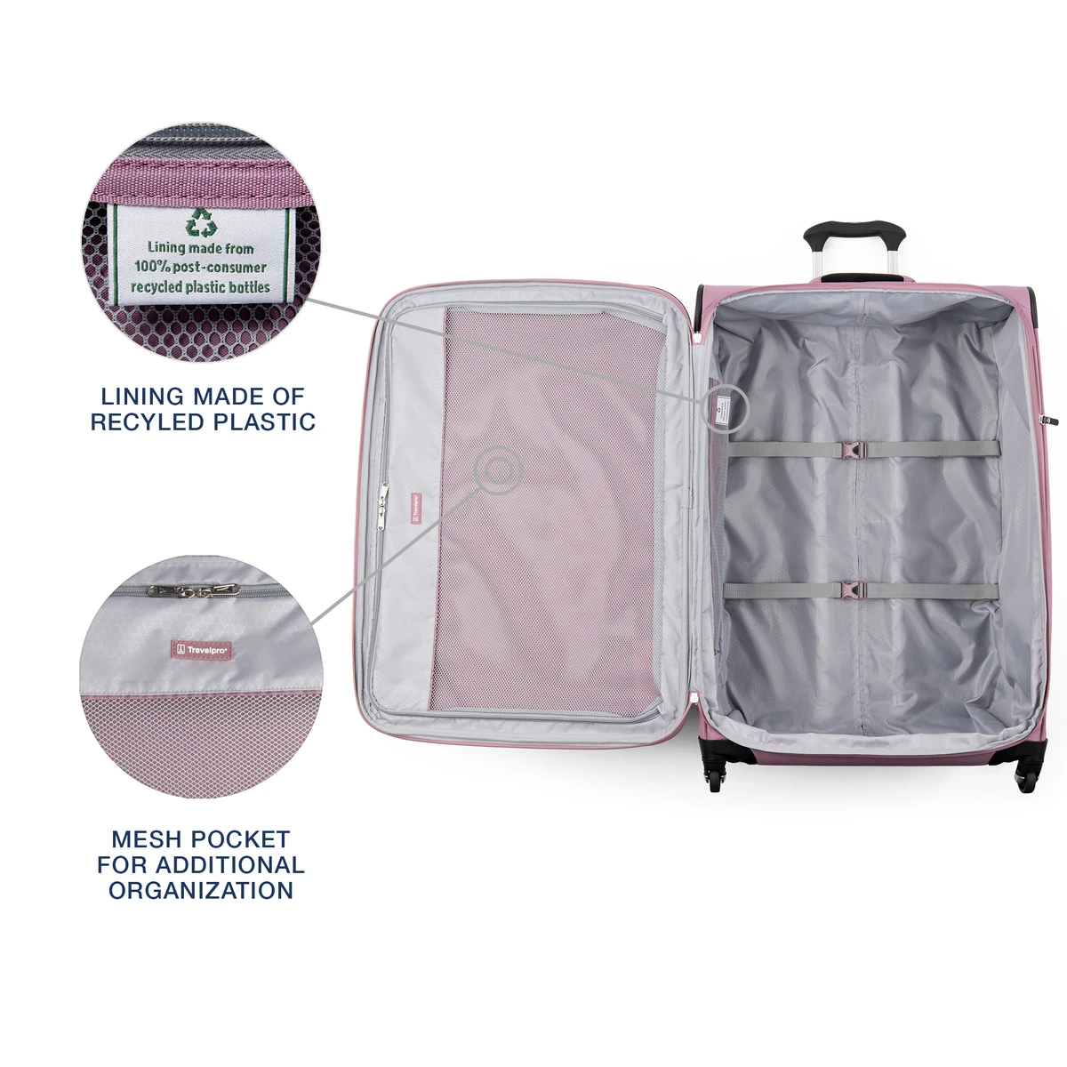 המזוודה הבינונית מסדרת Maxlite® 5 של Travelpro® משלבת בין עמידות, קלות משקל וארגון חכם. היא נועדה ללוות אותך בנוחות בכל נסיעה – מטיסות עסקים ועד חופשות משפחתיות – עם מערכת גלגלי ספינר כפולים 360° לתנועה חלקה ויציבה. הידית העליונה המתכווננת מאפשרת שליטה נוחה ונשיאה קלה, והמבנה הרך שומר על גמישות מבלי לוותר על חוזק. הבד החיצוני עשוי פוליאסטר איכותי בציפוי DuraGuard® העמיד בפני מים וכתמים, והבטנה הפנימית ECOFAB™ עשויה מ-100% בקבוקי פלסטיק ממוחזרים עם שכבת H2O Guard להגנה מפני לחות. תאים פנימיים מרווחים, כיס קדמי נוח וכיס צדדי לאביזרים מאפשרים אריזה יעילה ומסודרת.