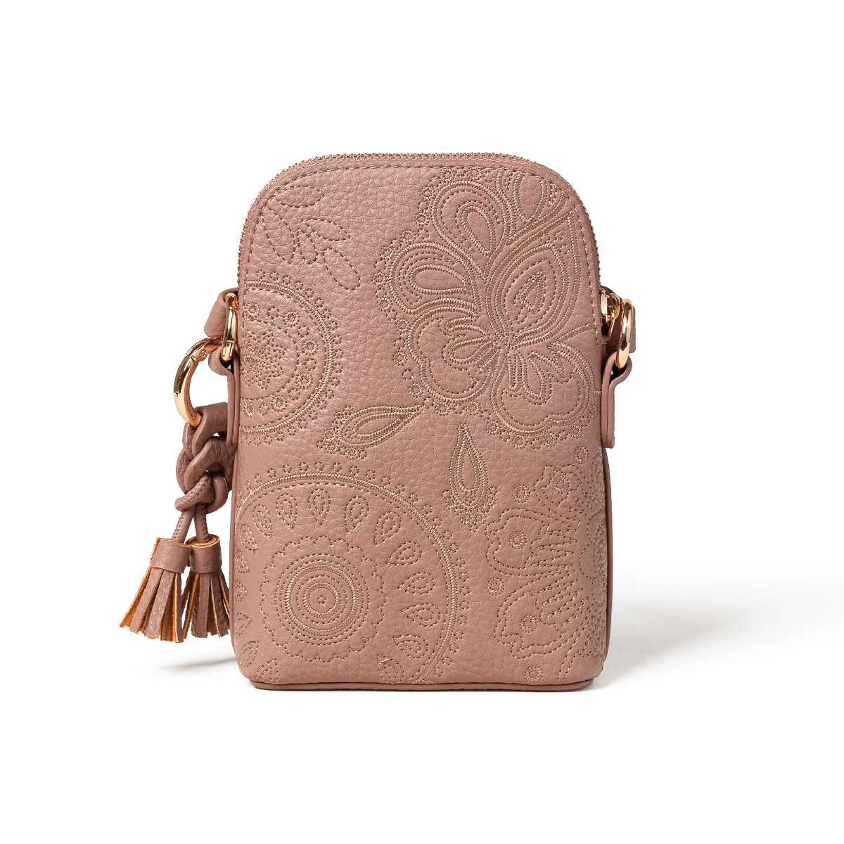 • תא ראשי עם סגירת רוכסן עם 3 תאים לכרטיסים.• רצועה בקליעת צמה הניתנת להסרה.