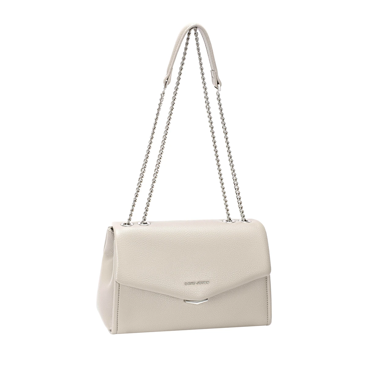 תיק צד בינוני בעיצוב נקי עם ידית שרשרת כסופה ניתנת לקיצור על ידי תפיסה כפולה