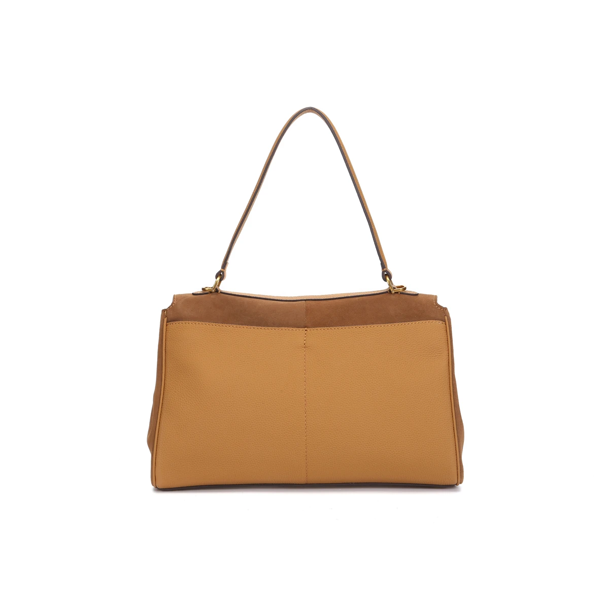 • סגירת דש קדמית עם פרטי מתכת בגוון זהב למראה משודרג.