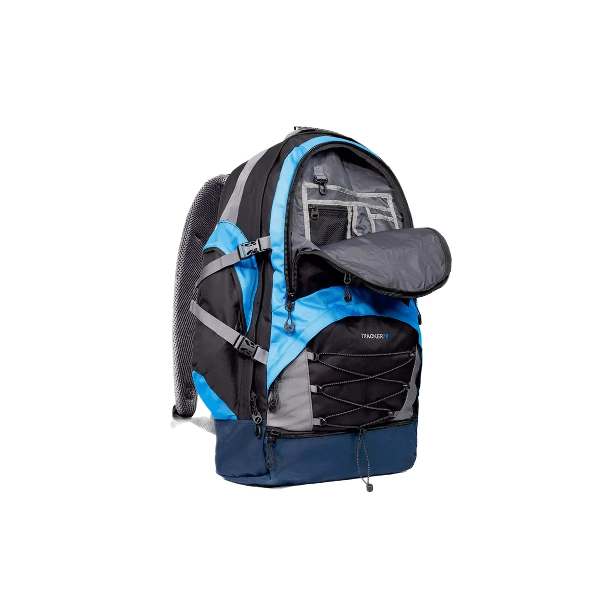 תרמיל TRACKER 70 מבית OUTDOOR REVOLUTION הוא תיק גב חזק ועמיד המתאים במיוחד למטיילים וחיילים. לתרמיל מערכת גב מרופדת ומאווררת במבנה אנטומי עם שלדת אלומיניום שתבטיח את נוחות הנשיאה, תא מרכזי גדול עם גישה מלמעלה ומלמטה ועוד חמישה תאי אחסון
