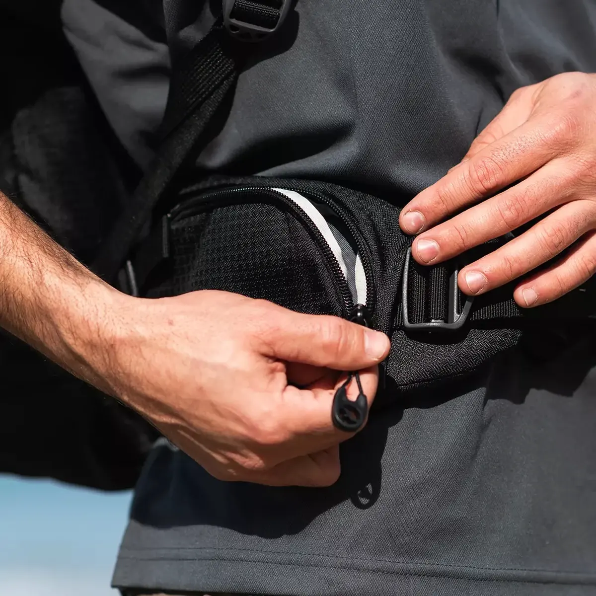 • רצועת מותן עם שני תאי אחסון בסגירת רוכסן