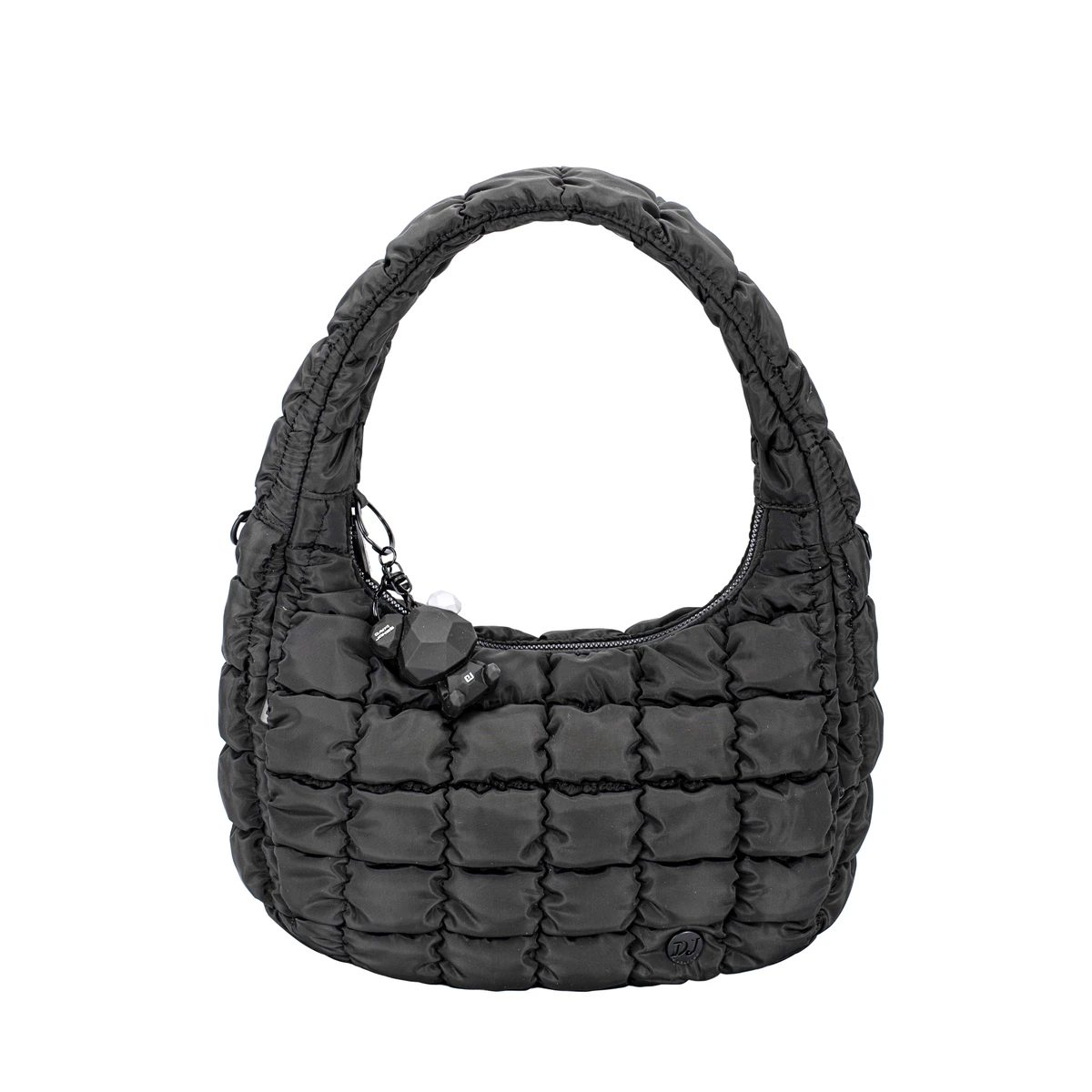 תיק צד בינוני עם בד מנופח ומחזיק מפתחות